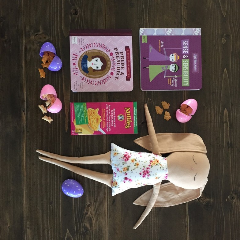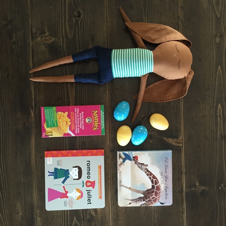 That’s it! The snack and pasta are edible (and the extra’s are in the cupboard and restocked the snacks which is a bonus. The bunny is a gorgeous handmade heirloom gift which I am in love with, and would highly recommend – she also makes gorgeous dolls, and foxes!). Our kids love books, so adding to the library is always welcome!
